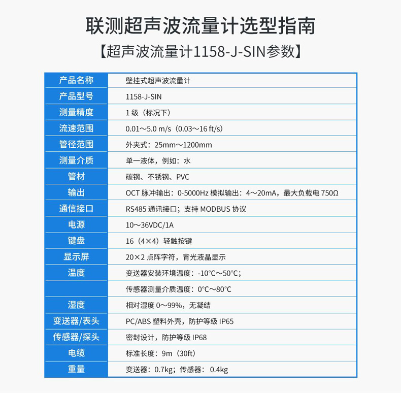 聯測1158-J-SIN壁掛式超聲波流量計